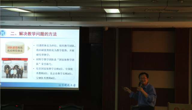 同时,于广华教授还为师生做了“发挥学科优势,培养高水平创新性本科人才的探索与实践”的教学学术报告。报告上,于广华教授给我们从当前教学过程中要解决的问题、各学科的优势给出了四阶递进、三体并举的教学问题解决的方法,从实际的应用案例中证明教学过程的改革有重大的效果。