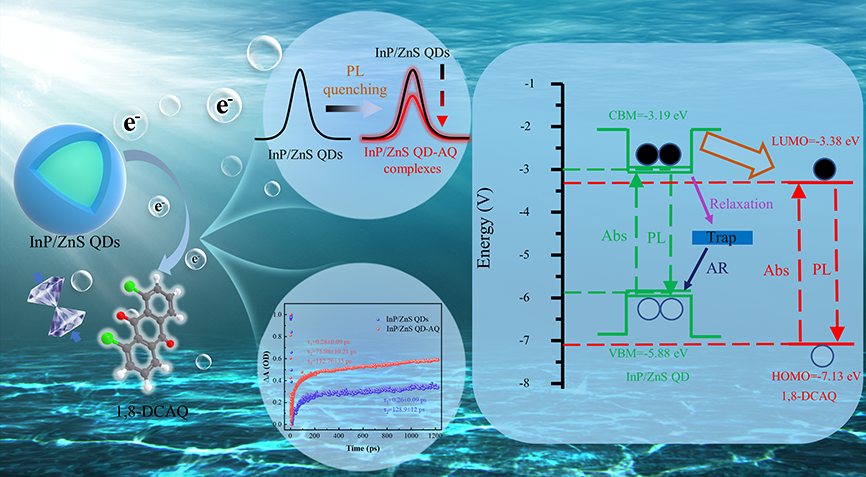 电子转移速率的调控对提高电子转移系统的光电转换效率至关重要,近年来逐渐成为研究热点。刘才龙教授团队利用高压原位瞬态吸收光谱探测技术,提出了压力调控甲苯中InP/ZnS量子点-蒽醌(InP/ZnS QD-AQ)复合体系电子转移的影响机制。研究表明,从常压至0.9GPa,压致供-受体间距的减小可以有效促进InP/ZnS QD-AQ复合体系的电子转移过程;从0.9GPa至2.1GPa,InP/ZnS QD-AQ复合体系的电子转移过程被抑制是压致InP/ZnS量子点的量子限域效应和蒽醌分子的压致AIE效应共同作用的结果。此项工作为基于供-受体复合体系光电器件的发展提供理论依据,并将促进其在光电转换领域中的应用。相关成果以“Electron transfer tuned by pressure-dependent aggregation-induced emission in InP/ZnS quantum dot-anthraquinone complexes(通过压力依赖的聚集诱导发光调控InP/ZnS量子点-蒽醌复合体中的电子转移)”为题发表在《Applied Physics Letters》(《应用物理快报》)国际期刊上。2021级硕士生秦霞霞和张海娃博士为论文共同第一作者,楚亚博士、王庆林教授、郑州大学郭海忠教授和刘才龙教授为共同通讯作者,永利集团304am官方入口为第一署名单位。